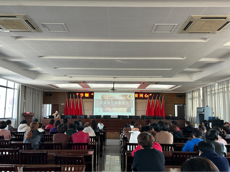 在三八妇女节即将来临之际,为了提高歌山镇各村妇联干部及妇女同胞的综合素质和文明涵养,助推全国文明城市创建工作,3月7日下午,歌山镇人民政府携手浙江横店影视职业学院影视美术学院人物形象设计教师团队对村镇妇联的妇女同胞们进行以“化妆美容,职业礼仪”为主题的形象礼仪培训活动,帮助她们由内而外提升职业形象和礼仪素养。
