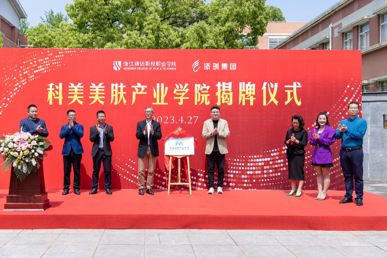 4月27日上午,科美美肤产业学院揭牌仪式在浙江横店影视职业学院举行。校党委副书记、校长王兆青、添琪集团董事长耿强、金华美容美发协会会长阮旭及合作企业代表出席仪式。